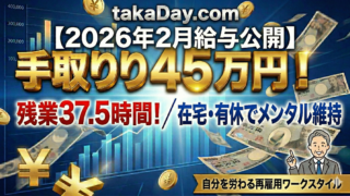 毎月恒例、定年後再雇用で働く私「たかゆー」の給与公開です。今回は2026年2月の給与明細を公開します!前月(2025年12月)に引き続き、実は1月も少しうつ気味でメンタルが落ち込んでいました。しかし、有給休暇や在宅勤務(テレワーク)を駆使し...