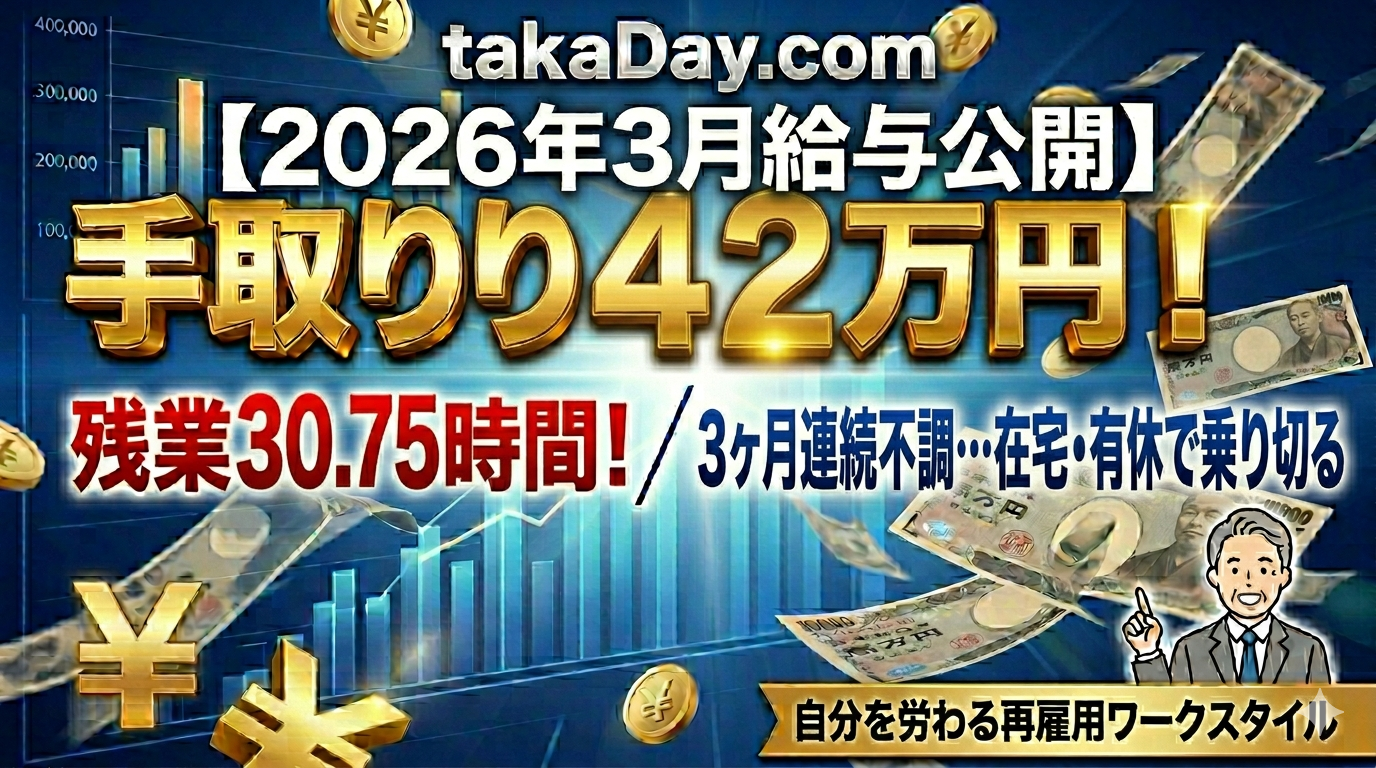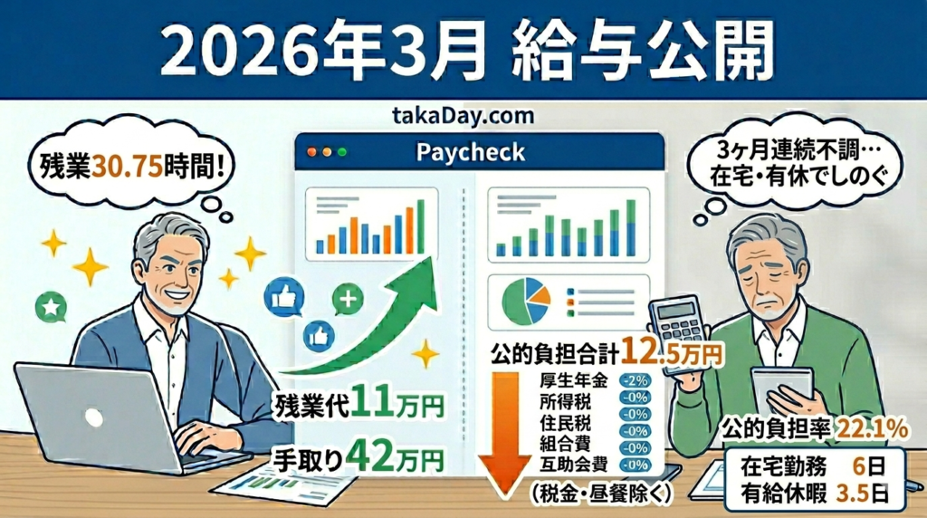 2026年3月の給与は、メンタル不調という波を在宅勤務と有給で乗りこなしつつ、手取り約42万円を着地させることができました。